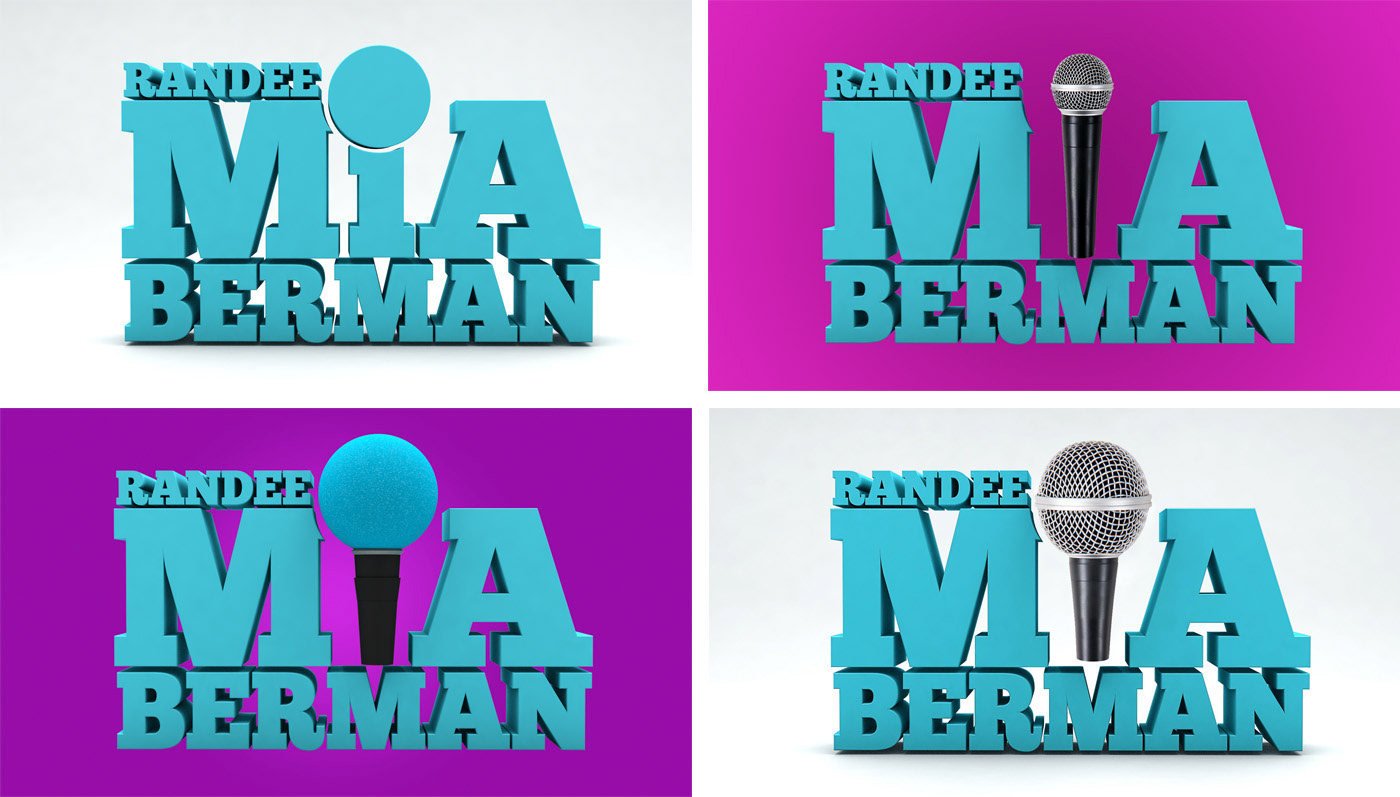The color and style of the typography has a bright and sense of fun feeling, to connect with Ms. Berman's wardrobe and on-air persona, which includes political satire and pop culture references. She interviews celebrities, politicians and people on the street with a retro microphone as part of the show, so a stylized microphone in the same color was incorporated into the logo.