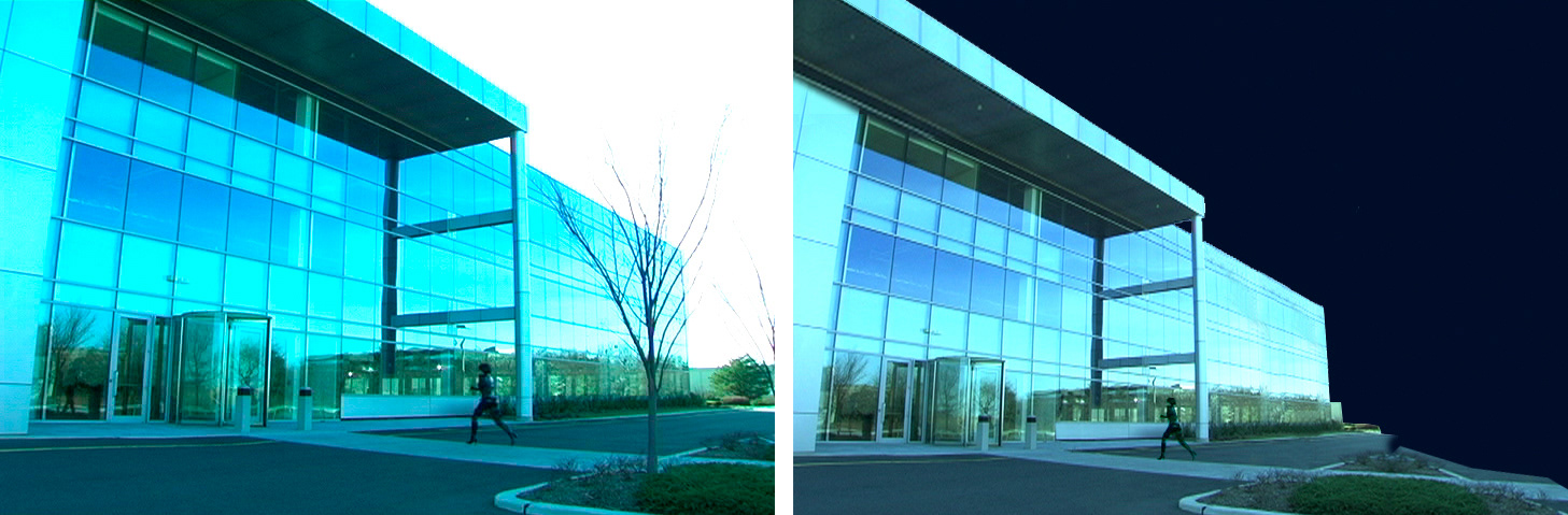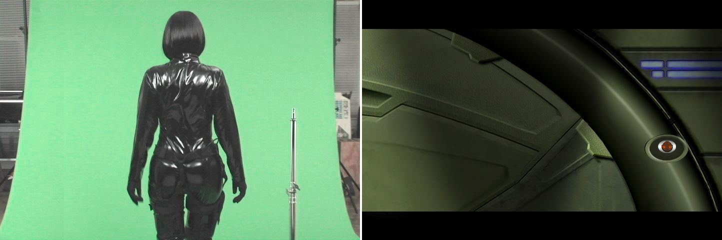 Compositing live action plate + CG background.  Still from film.