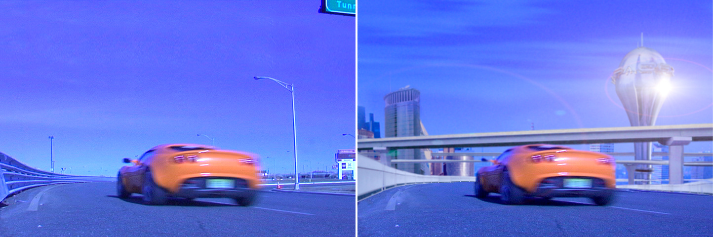 BEFORE AND AFTER / Matte painting + car rotoscope.